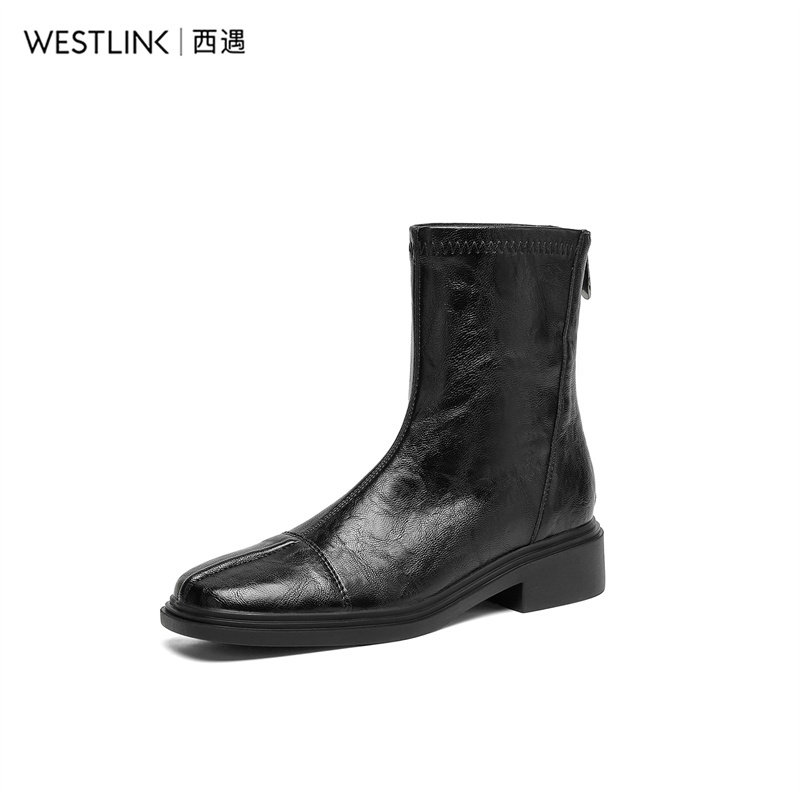 西遇巨好看粗跟短靴女2025新款秋冬复古弹力瘦瘦靴英伦风马丁靴TQ