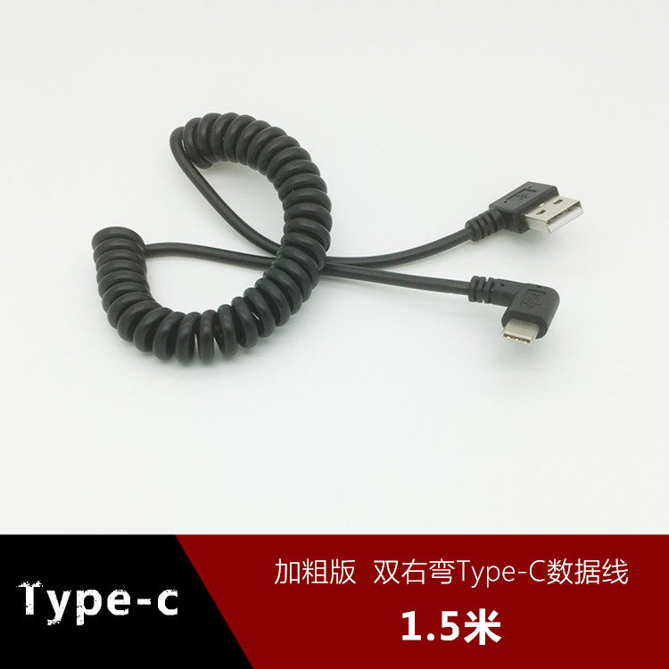 Type-c双右弯头弹簧数据充电线适用小米5s乐视华为p9p10荣耀v8v9