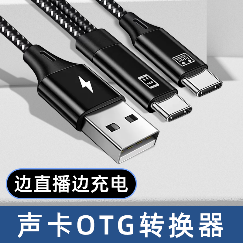 适用于Type c手机OTG声卡数据线安卓V8录音伴奏连接线艾肯so8直播调音台P40华为mate50荣耀30充电pro音频线20
