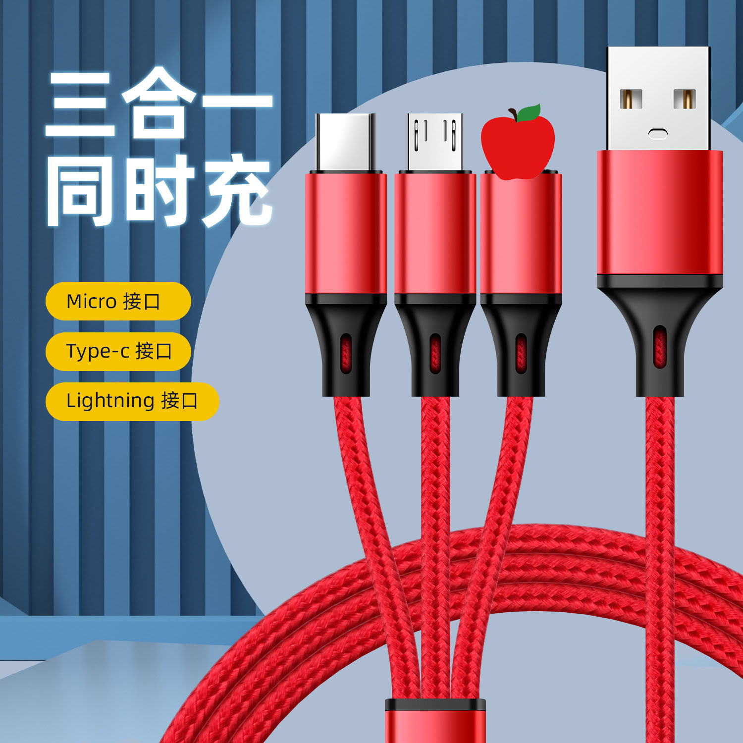 数据线三合一充电线适用于华为type-c苹果安卓v8接口快充 usb车载
