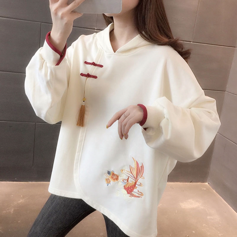 2025新款中国风套宽松显瘦遮肚复古潮春秋薄款连帽卫衣女国潮时尚