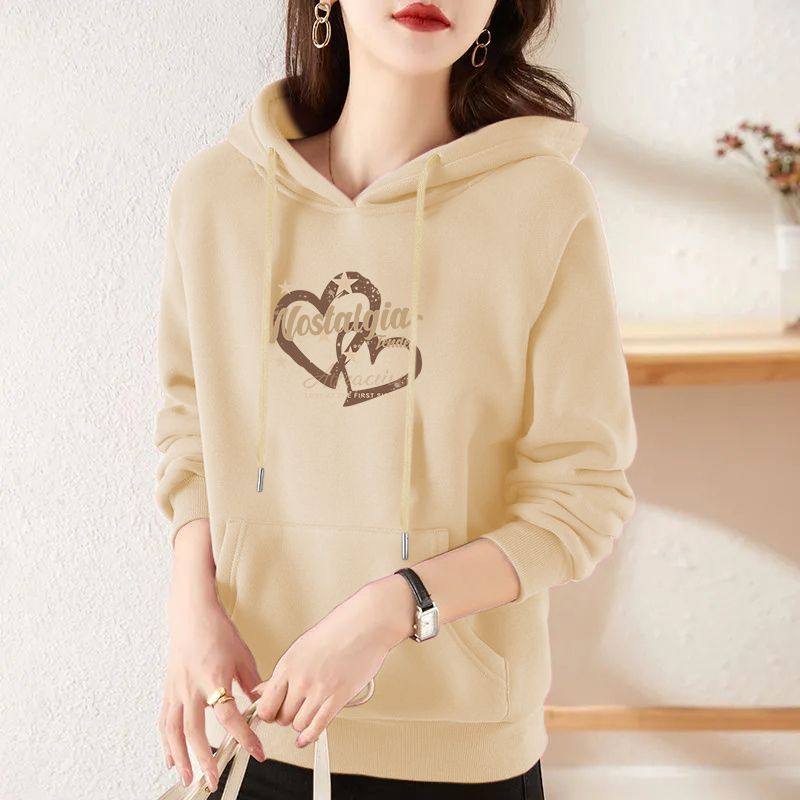 即墨杏色薄款连帽卫衣女年爆款时尚慵懒风宽松显瘦大码外套上衣潮