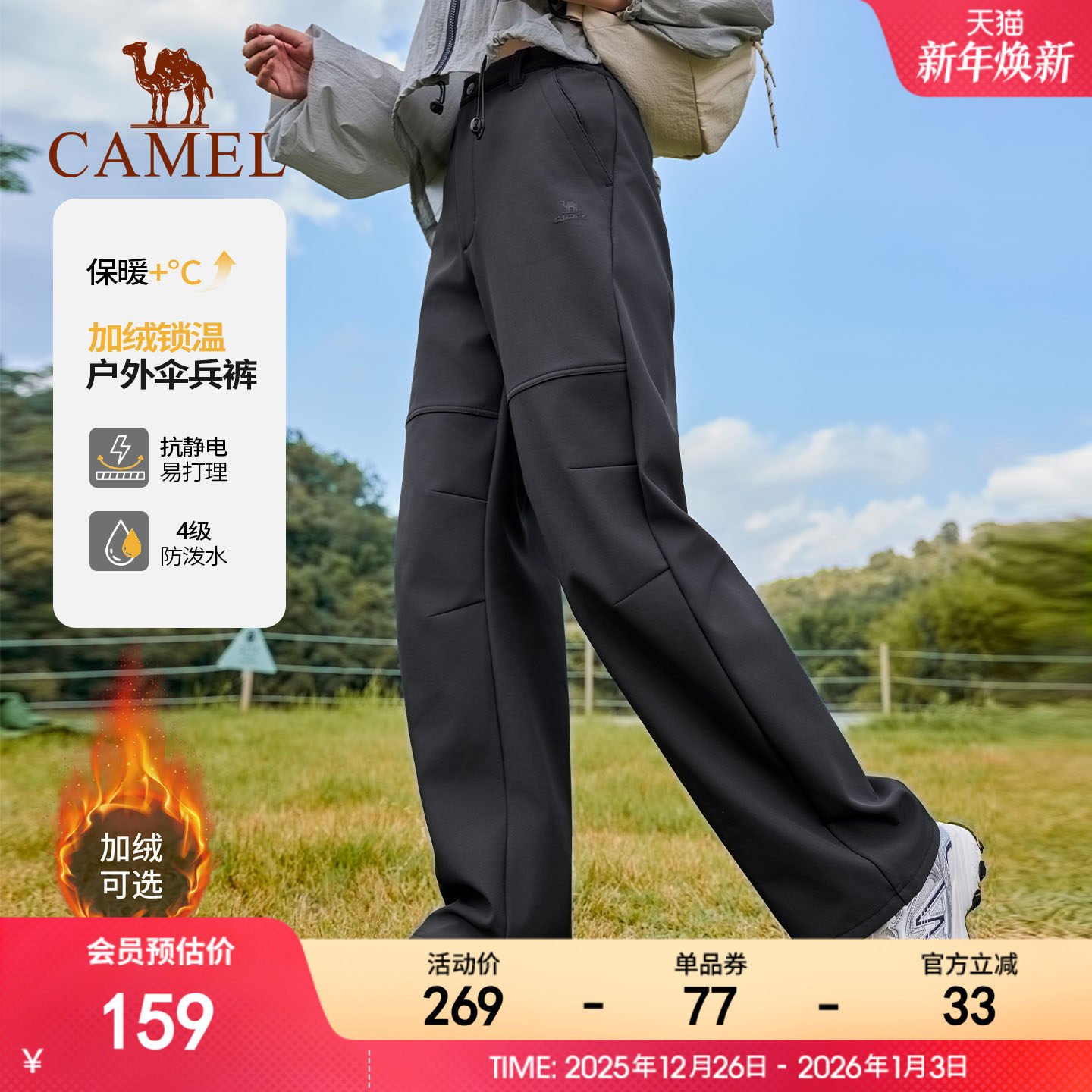 骆驼运动裤女户外伞兵裤防水防风吸湿高弹冲锋裤登山软壳裤工装裤