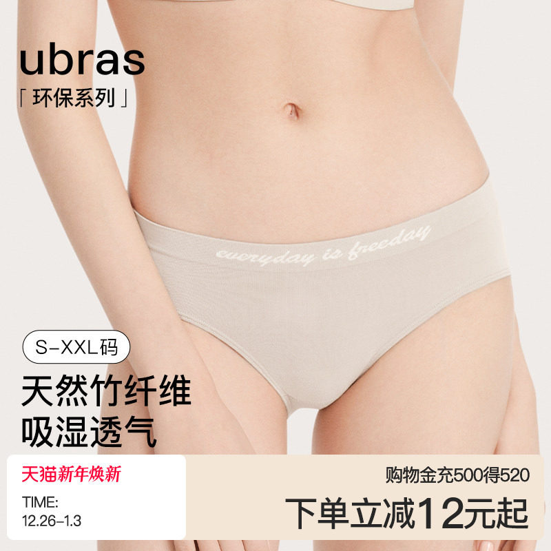 ubras竹纤维内裤女士环保纯棉抗菌夏季薄款高弹透气中腰三角短裤