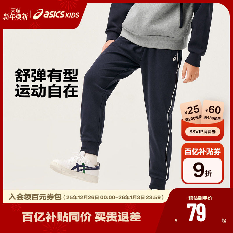 ASICS/亚瑟士童装男女童罗纹腰运动裤舒适宽松柔软高弹收口运动裤