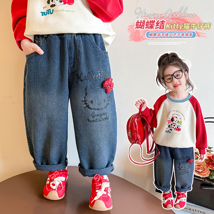 库洛米美乐蒂女童牛仔裤新款韩版洋气女孩秋季宽松阔腿裤儿童裤子