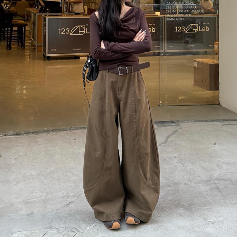【现货】Rouje Life欧美风扭缝牛仔裤新款休闲宽松系腰带直筒长裤