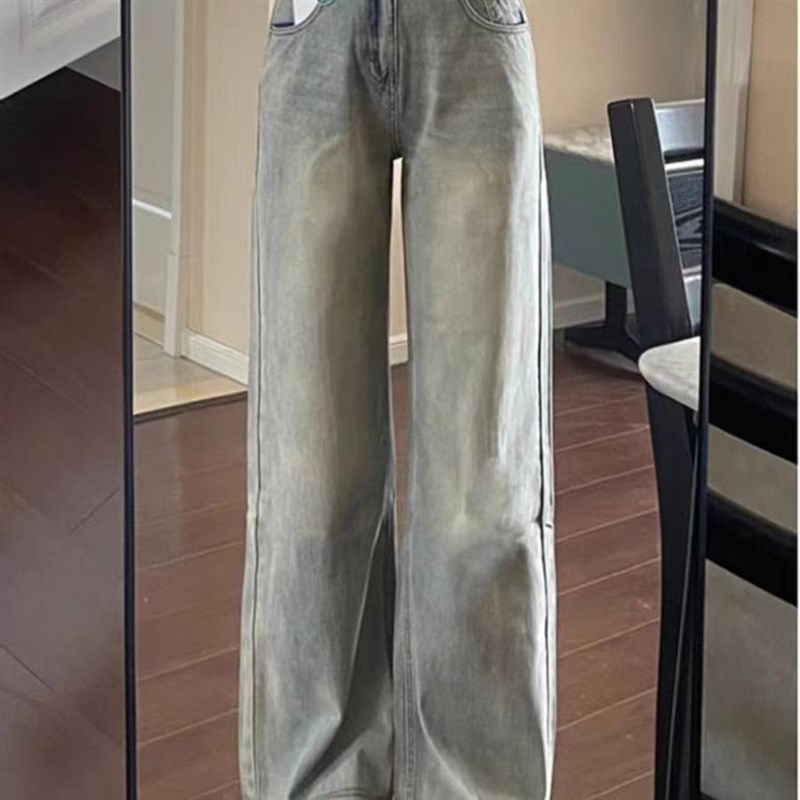 K244682可 阔腿牛仔裤新款高腰秋季宽松显瘦垂感拖地直筒裤