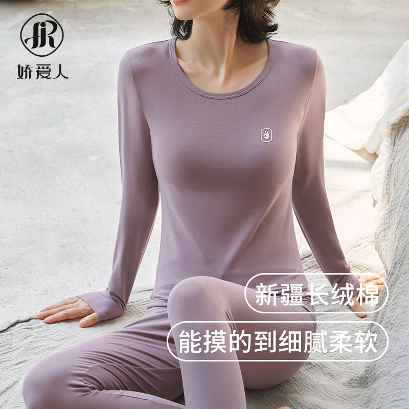 纯棉保暖内衣女士薄款内穿打底上衣全棉毛衫少女学生秋衣秋裤套装
