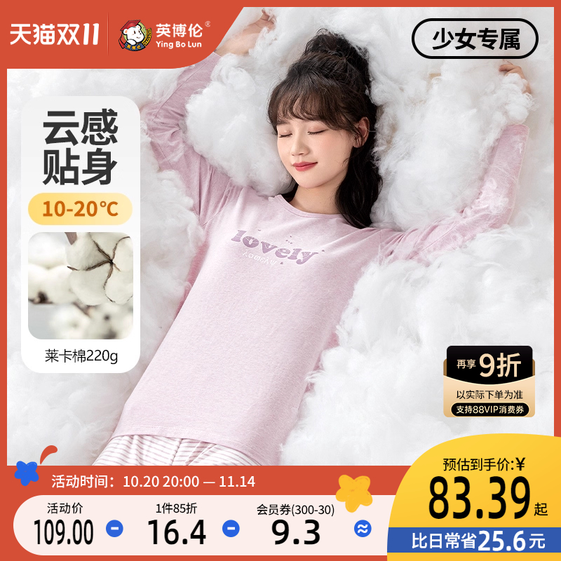 英博伦女大童内衣套装女秋冬季莱卡纯棉少女学生秋衣秋裤薄款睡衣