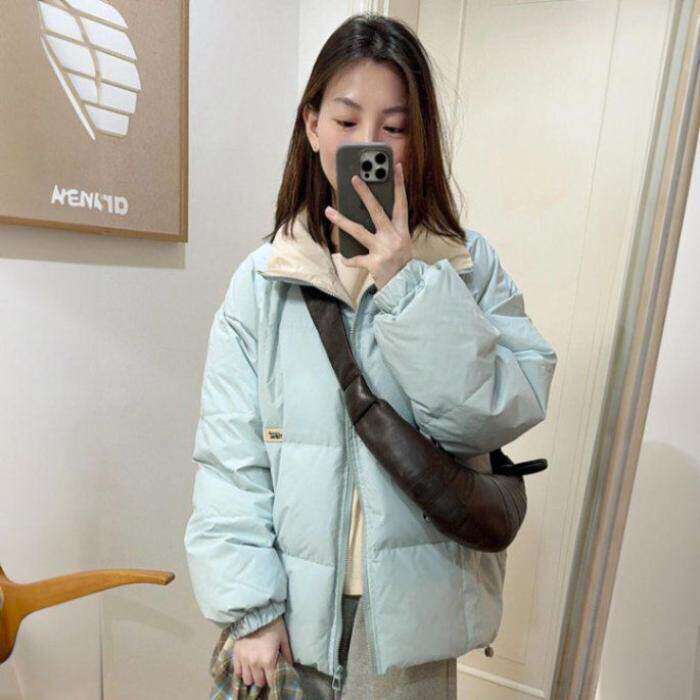 轻薄90白鸭绒羽绒服女冬季韩系学院风潮牌大学生保暖加厚立领外套