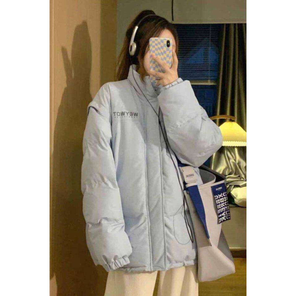韩版学院风浅蓝色保暖加厚棉衣外套女学生冬季甜美百搭休闲棉服潮