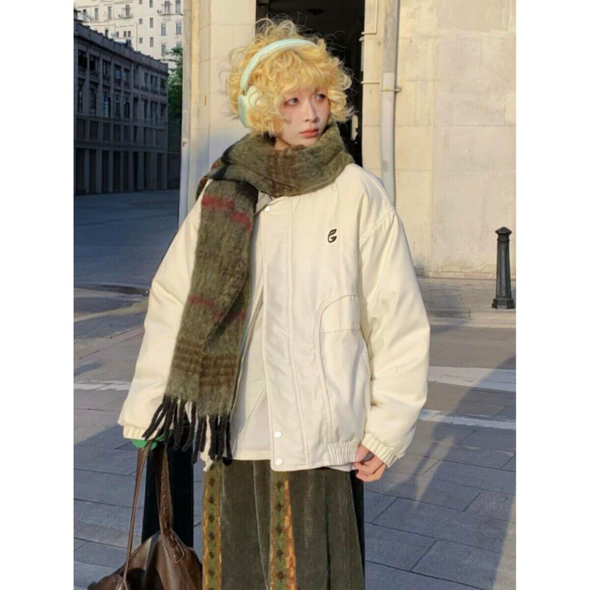 学院风米白慵懒棉服女大童冬季初中高中学生宽松加厚保暖外套棉袄