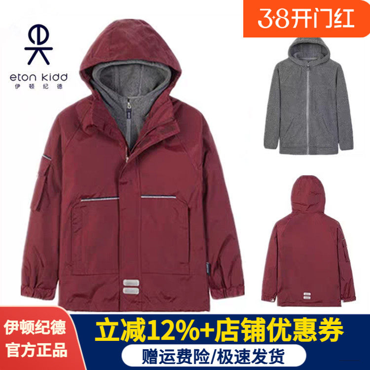 伊顿纪德校服男女童儿童冬季加绒防寒中小学生冬季脱卸式保暖外套
