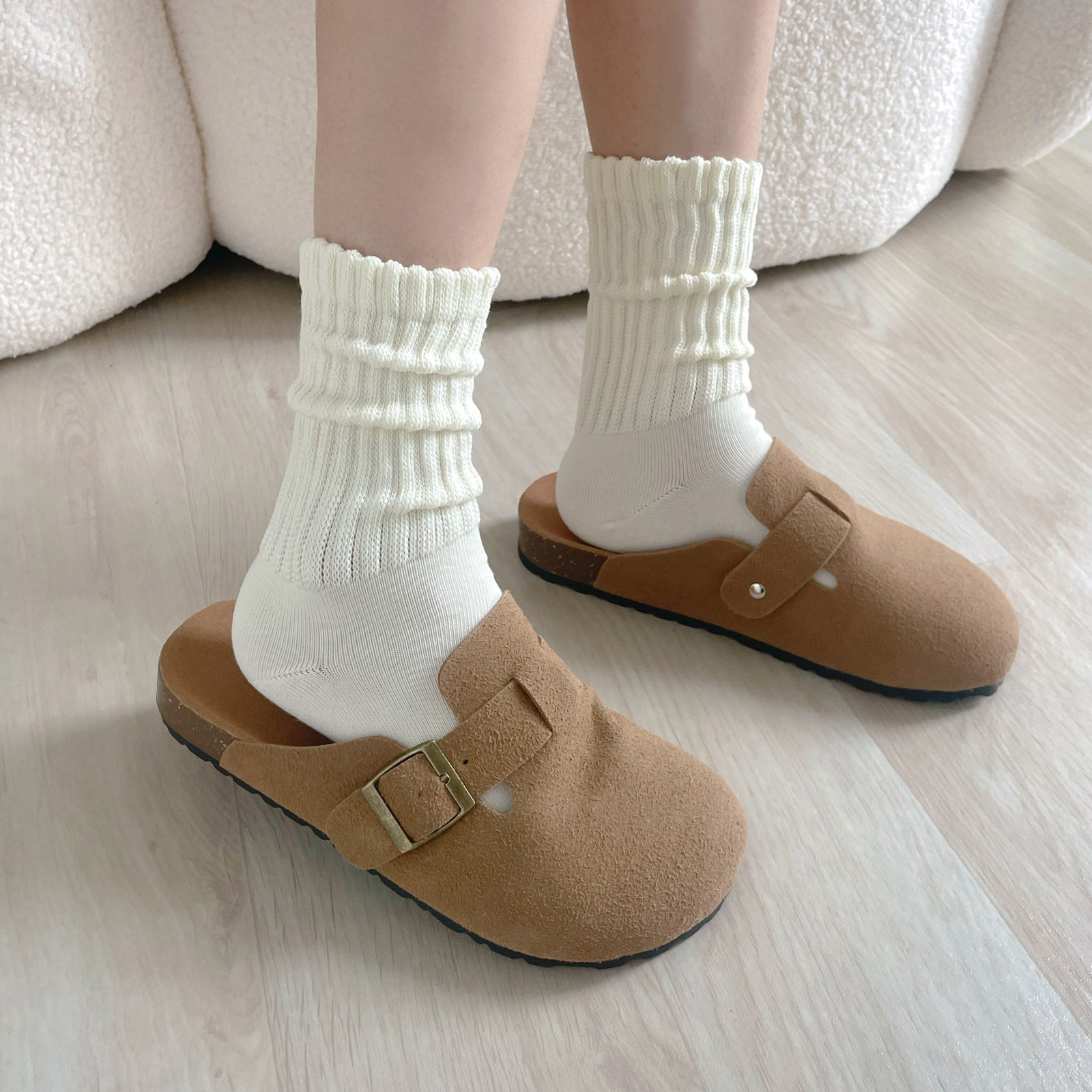 勃肯鞋袜子女美拉德堆堆袜搭配乐福鞋2025新款卡其燕麦色棕色秋季