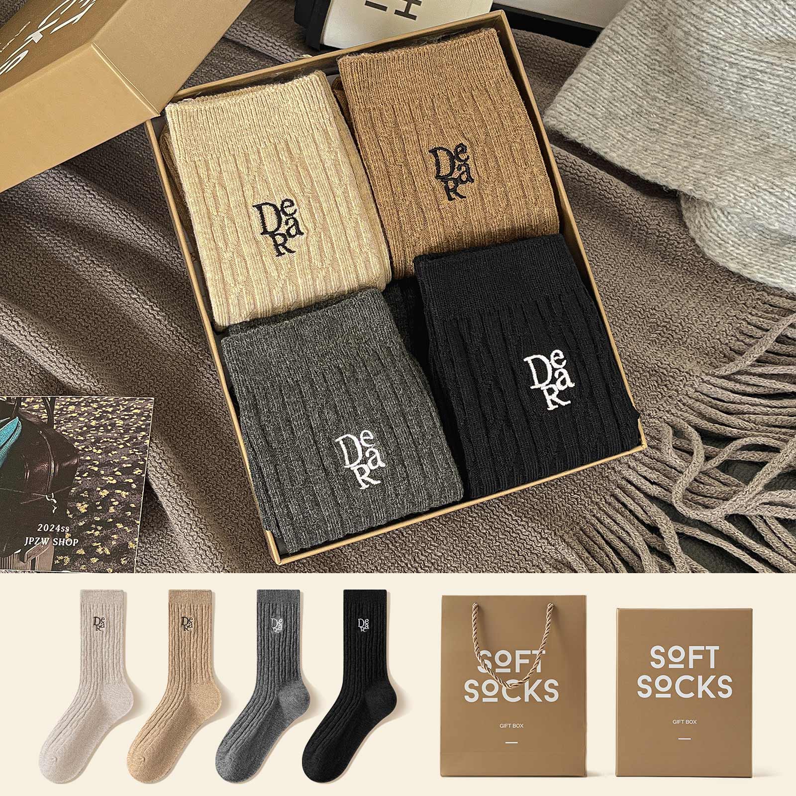 韩系袜子女款纯棉中筒袜美拉德无骨ins潮礼盒秋冬季2025新款字母