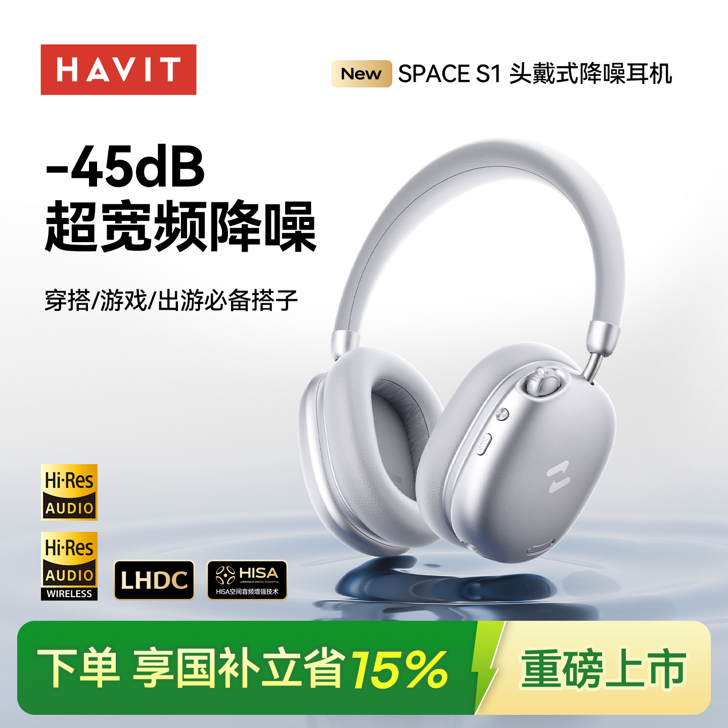海威特SPACE S1主动降噪头戴式耳机蓝牙无线游戏电竞耳麦2026新款