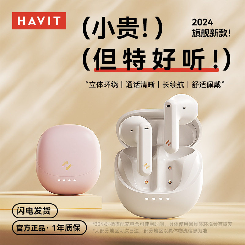 havit/海威特E9蓝牙耳机无线半入耳新款女生高音质长续航久戴不痛