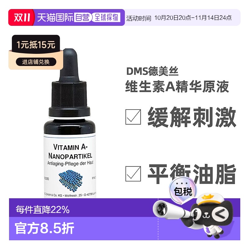 欧洲直邮德国DMS德美丝维他命A精华原液水20ml祛痘粉刺美白正品