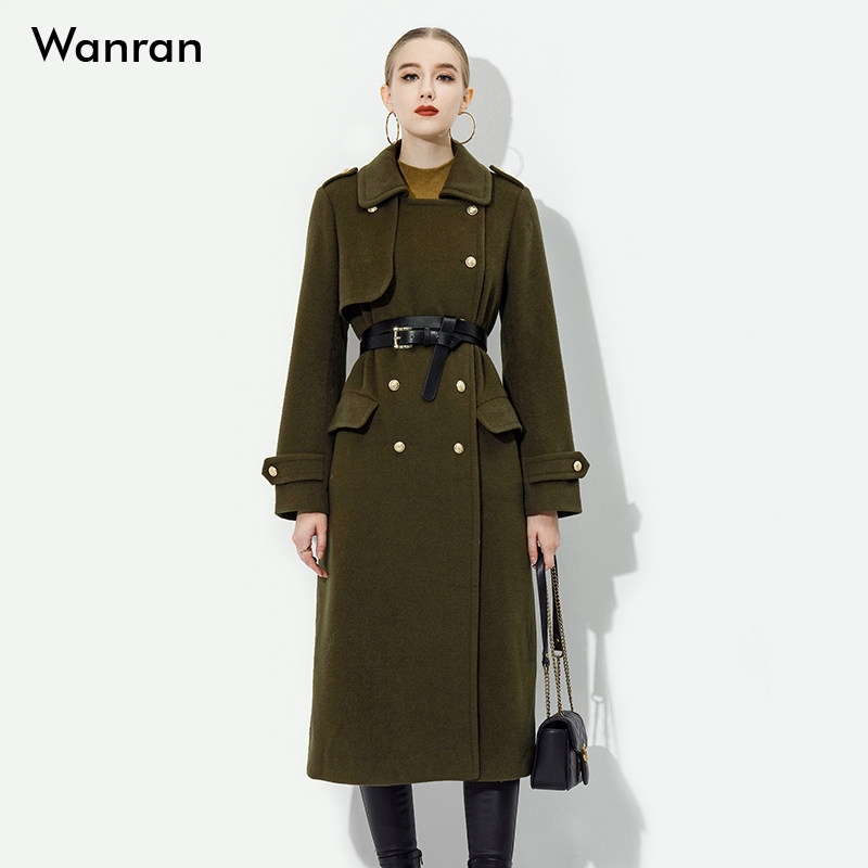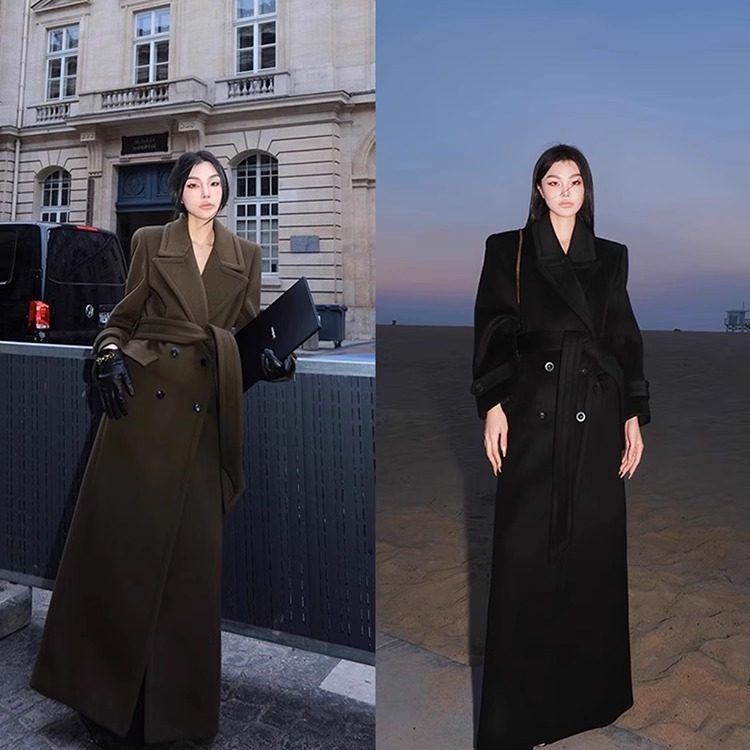 军绿色长款毛呢外套女羊毛大衣冬季廓形长款欧美大牌时尚大气加厚