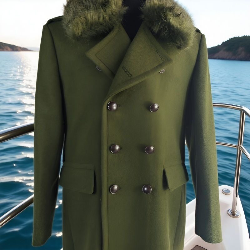 军绿色羊毛呢中衣男2024秋冬新款双排扣轻奢毛呢外套经典中长大衣