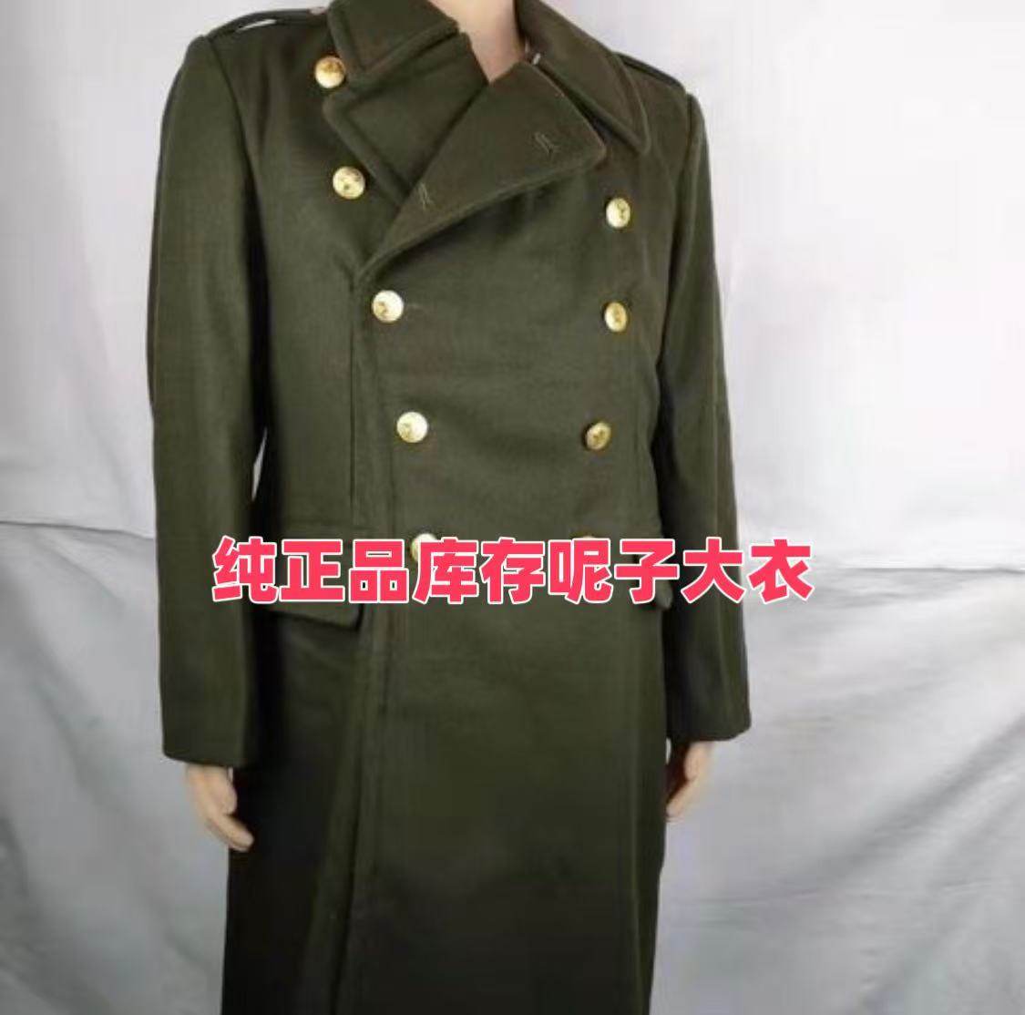军绿色解放版毛呢料大衣棉里衬后开叉款复古金典外套冬季保暖长衣