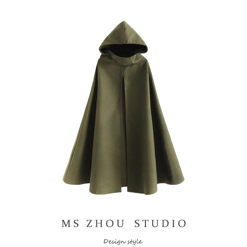 小众军绿色暗黑风个性神秘巫师斗篷毛呢连帽外套披肩罩衫袍子大衣
