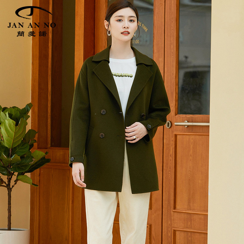 JAN AN NO 简爱诺简约气质绵羊毛军绿色毛呢大衣外套冬J2360149WT