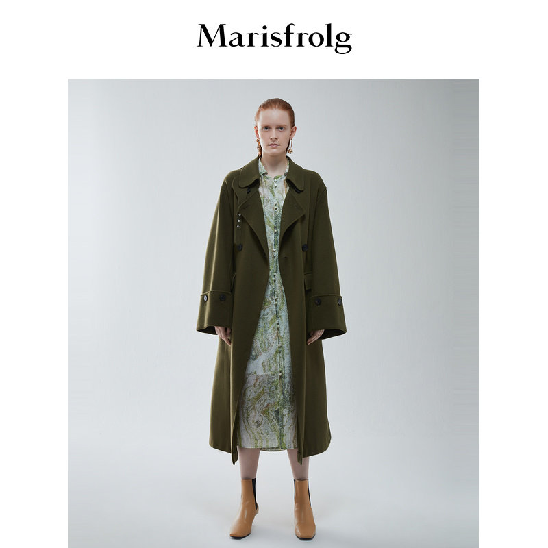 埋葬的生机军绿色毛呢大衣女长款军旅风工装长外套秋冬17298