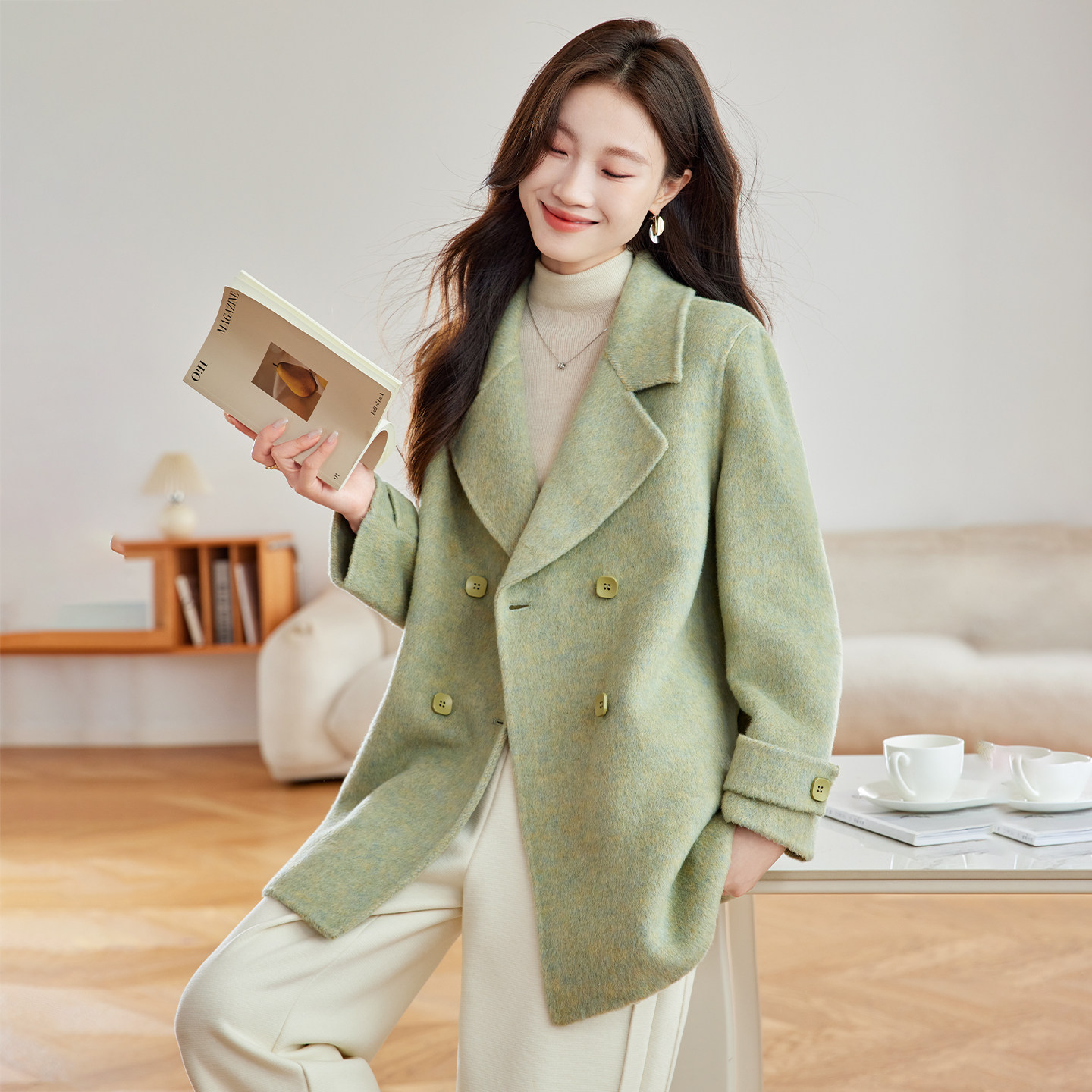 百搭款毛呢外套大衣时尚10%羊绒+90%高支羊羔毛黑色军绿色赫本风