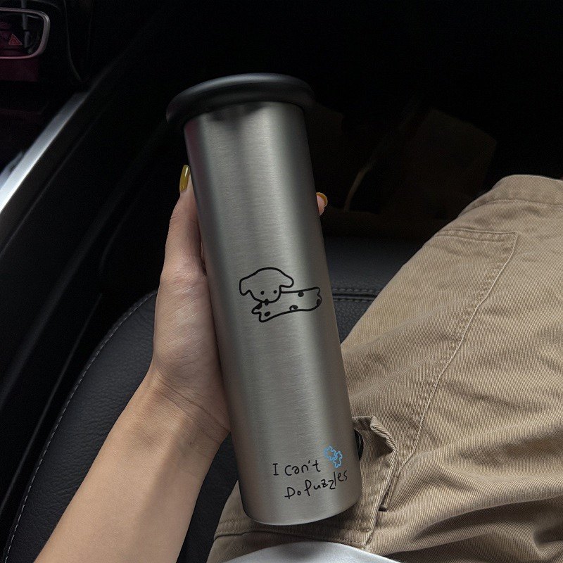 高级感不锈钢本色小狗蘑菇杯 小众保温杯随手杯 316不锈钢直身杯