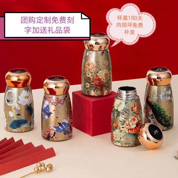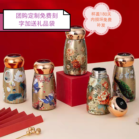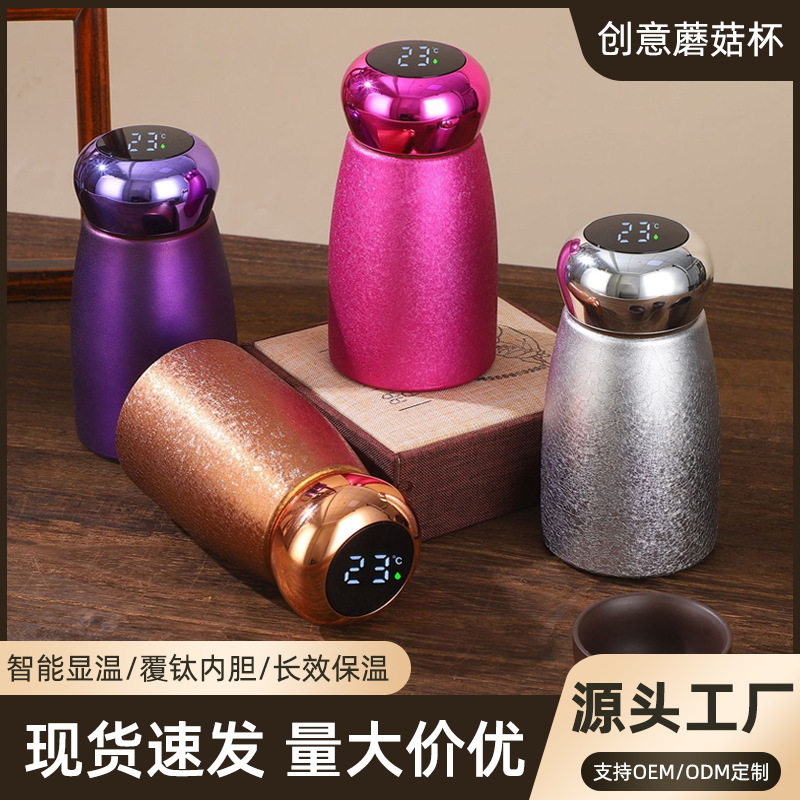 国风不锈钢保温杯简约时尚迷你蘑菇杯高颜值智能显温杯新年礼品杯
