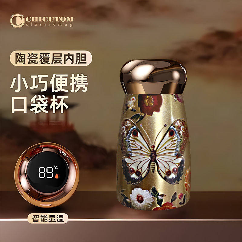 点击率国风陶瓷内胆保温杯新款高颜值便携水杯智能感温迷你蘑菇杯