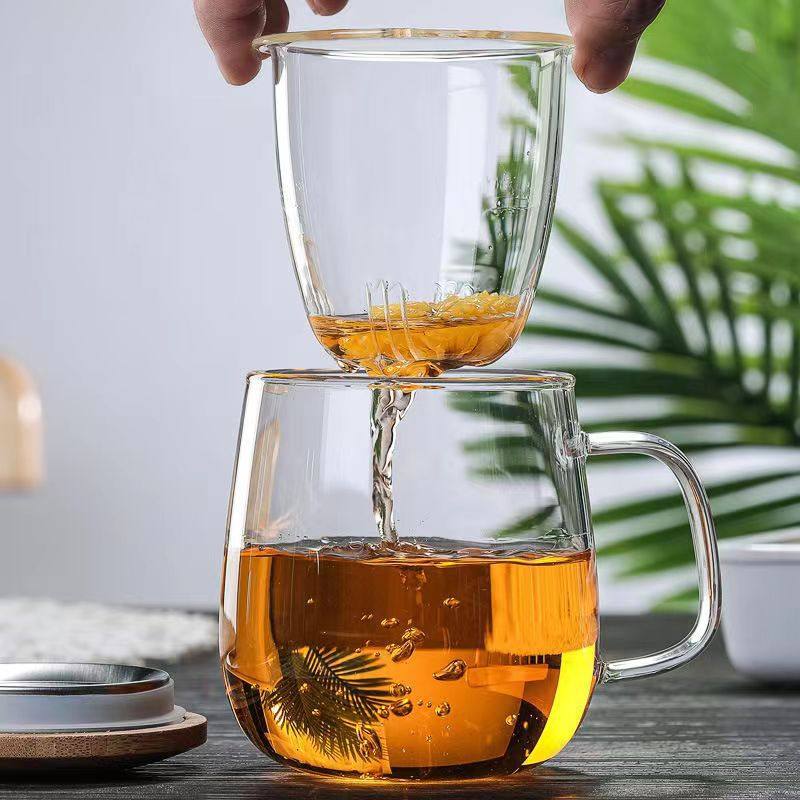 物生物蘑菇杯中式泡茶办公耐热透明玻璃男夏季茶水分离简约水杯女