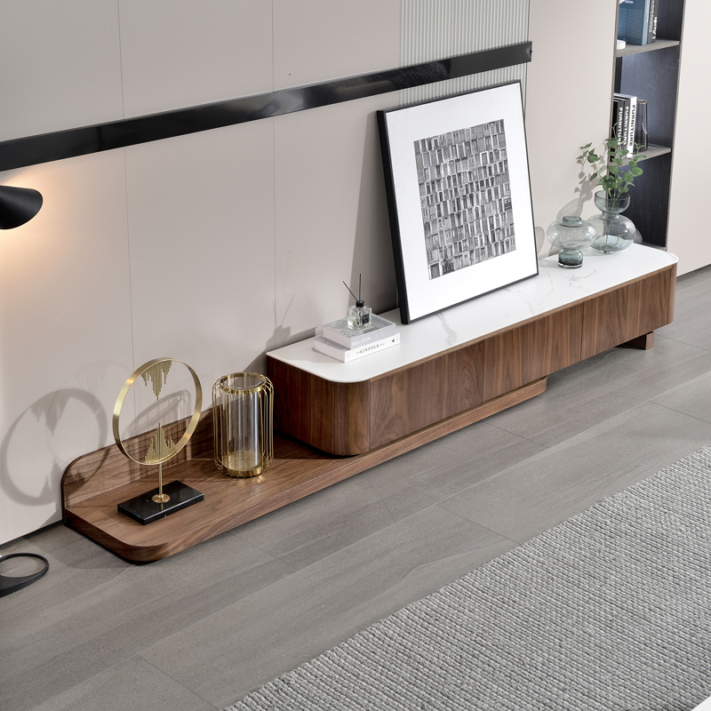 现代简约意式轻奢天然奢石实木储物电视柜客厅家用可定制落地地柜