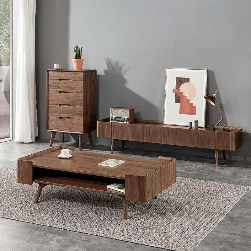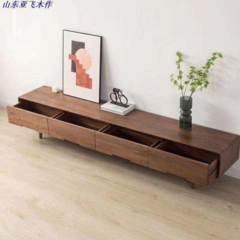 北欧黑胡桃木电视柜 现代简约樱桃木客厅边柜 小户型实木抽屉储物
