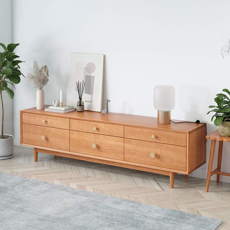 全实木电视柜简约现代卧室落地高款收纳储物一体客厅家用电视机柜