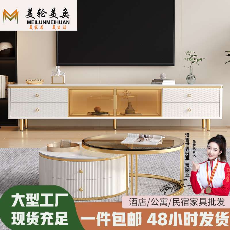轻奢茶几电视柜组合可伸缩岩板现代简约小户型客厅家用圆形茶几桌