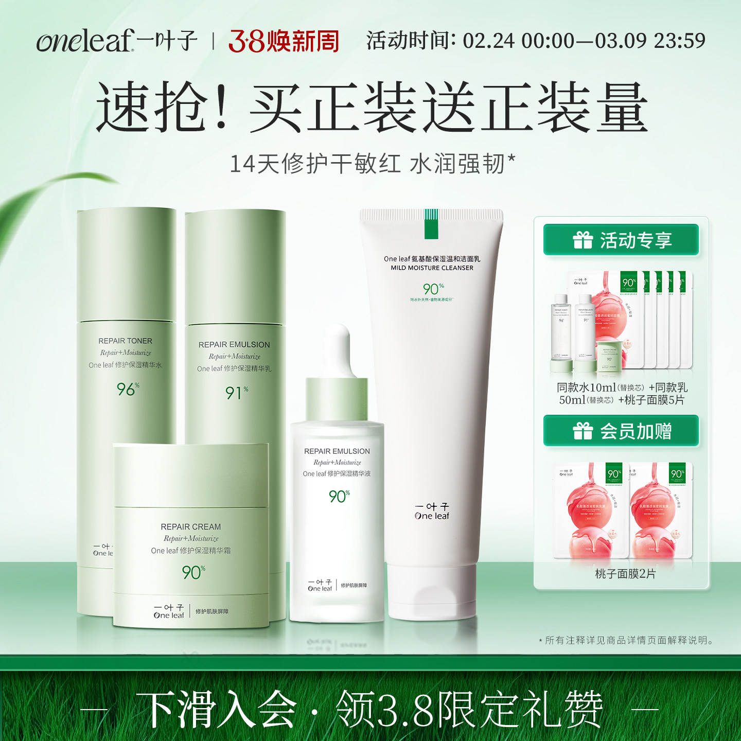 一叶子水乳套装女补水保湿护肤品敏感肌舒缓修护秋冬干燥官方正品