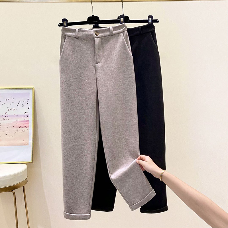 - 毛呢哈伦裤女宽松秋冬