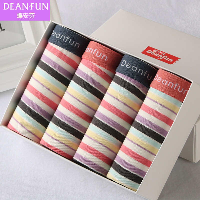 蝶安芬女内裤女士内裤条纹莫代尔柔软舒适透气性感中腰平角礼盒装