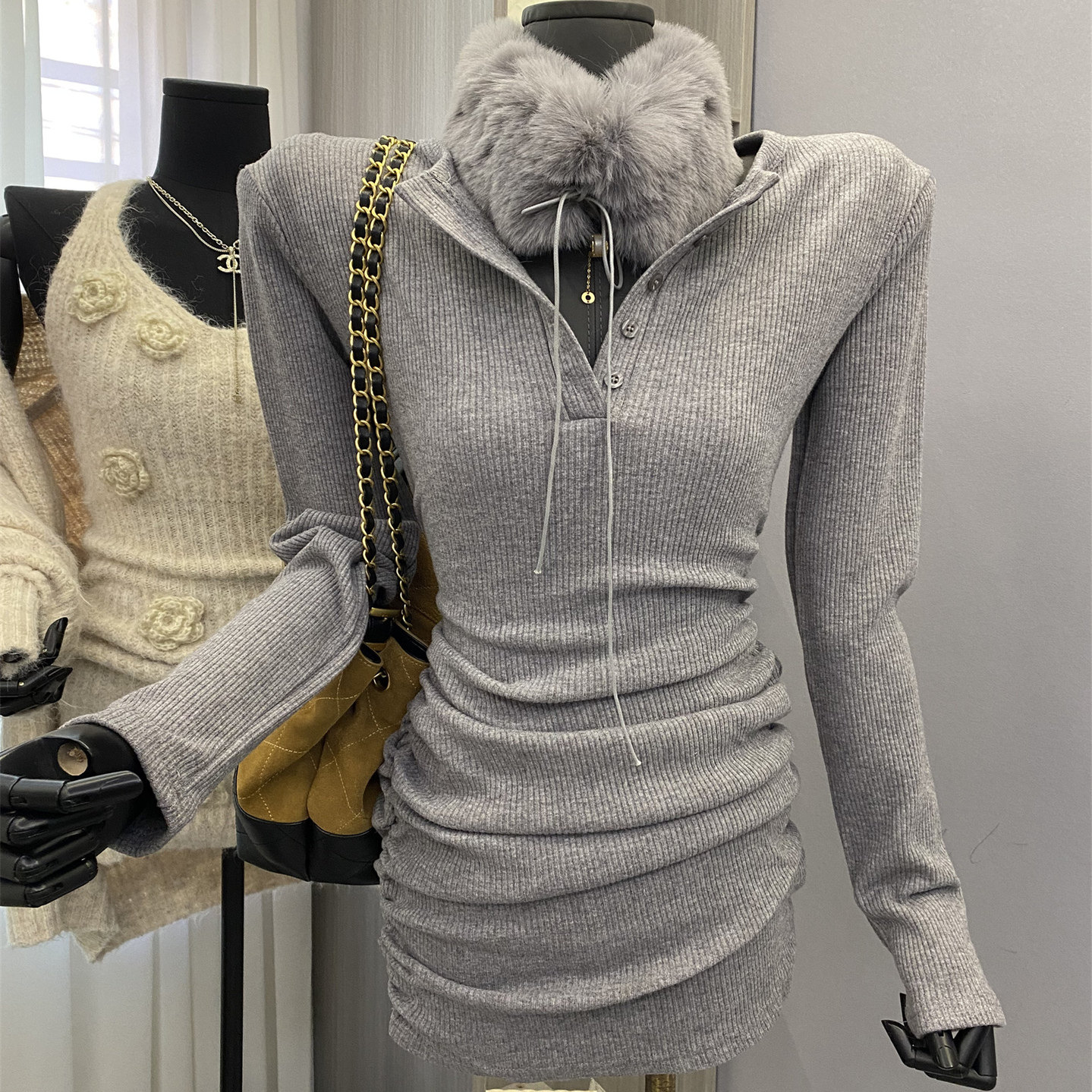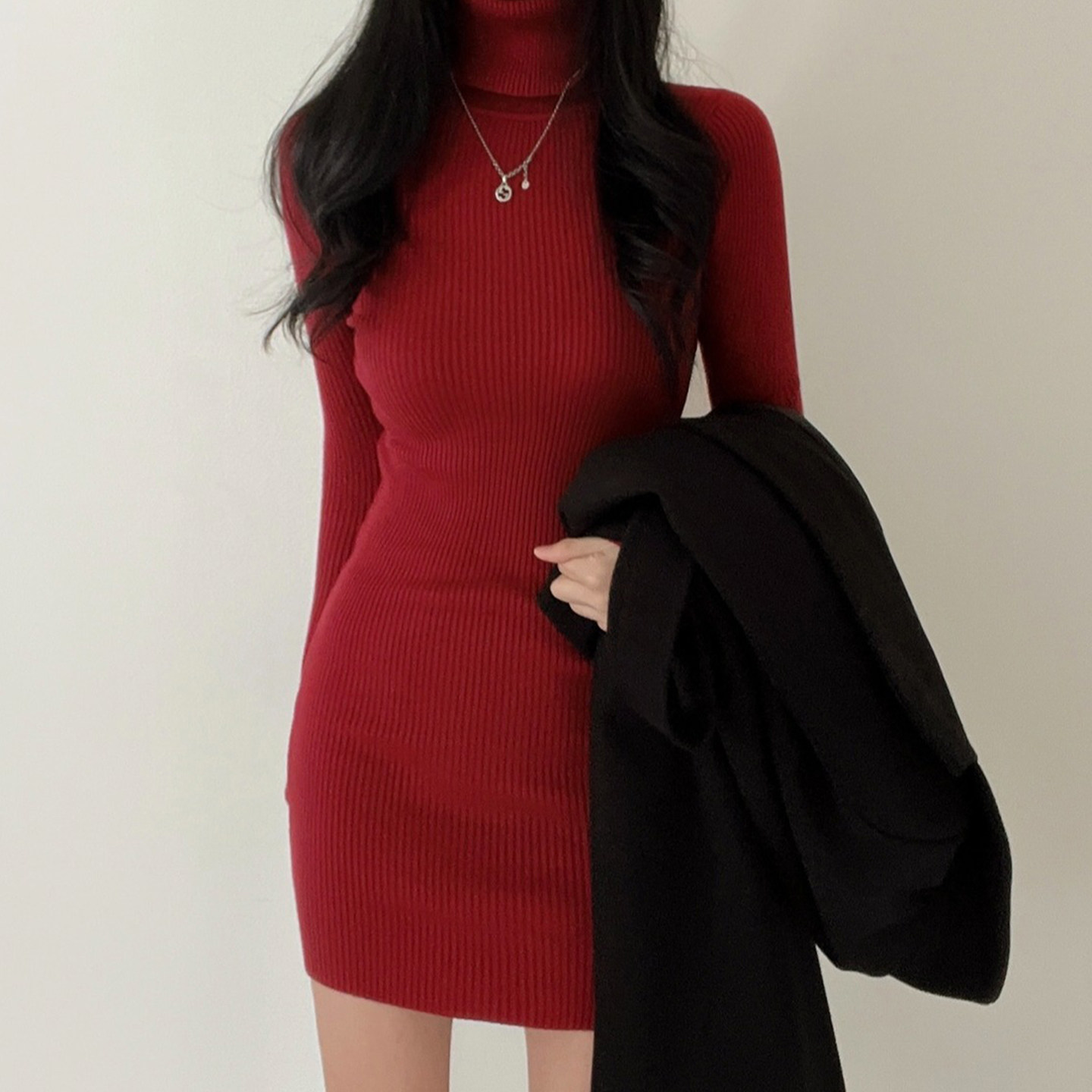 - 半高领 毛衣 连衣裙