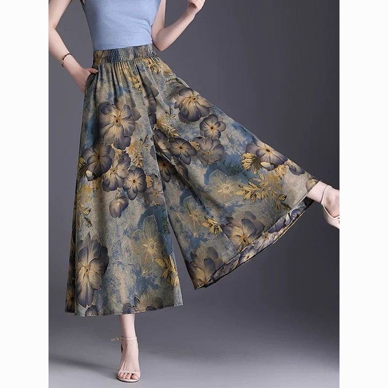 大码裙裤印花裙裤夏季2025新款阔腿宽松高腰显瘦休闲洋气妈妈裤裙