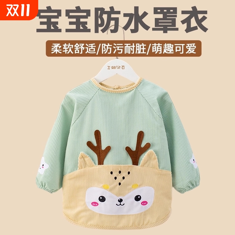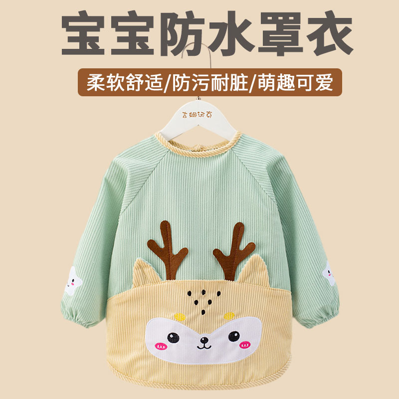 宝宝罩衣女宝秋冬防水防脏饭兜儿童反穿衣围裙吃饭护衣婴儿灯芯绒