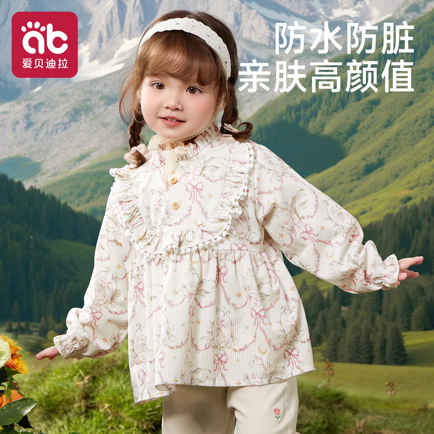宝宝罩衣吃饭围兜女宝宝防水防脏灯芯绒围裙洋气秋冬外穿儿童护衣