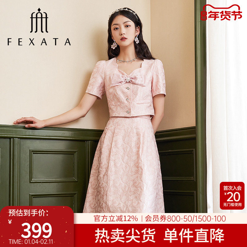 FEXATA斐格思时尚套装女2026春新品蝴蝶结提花两件套名媛女装套装