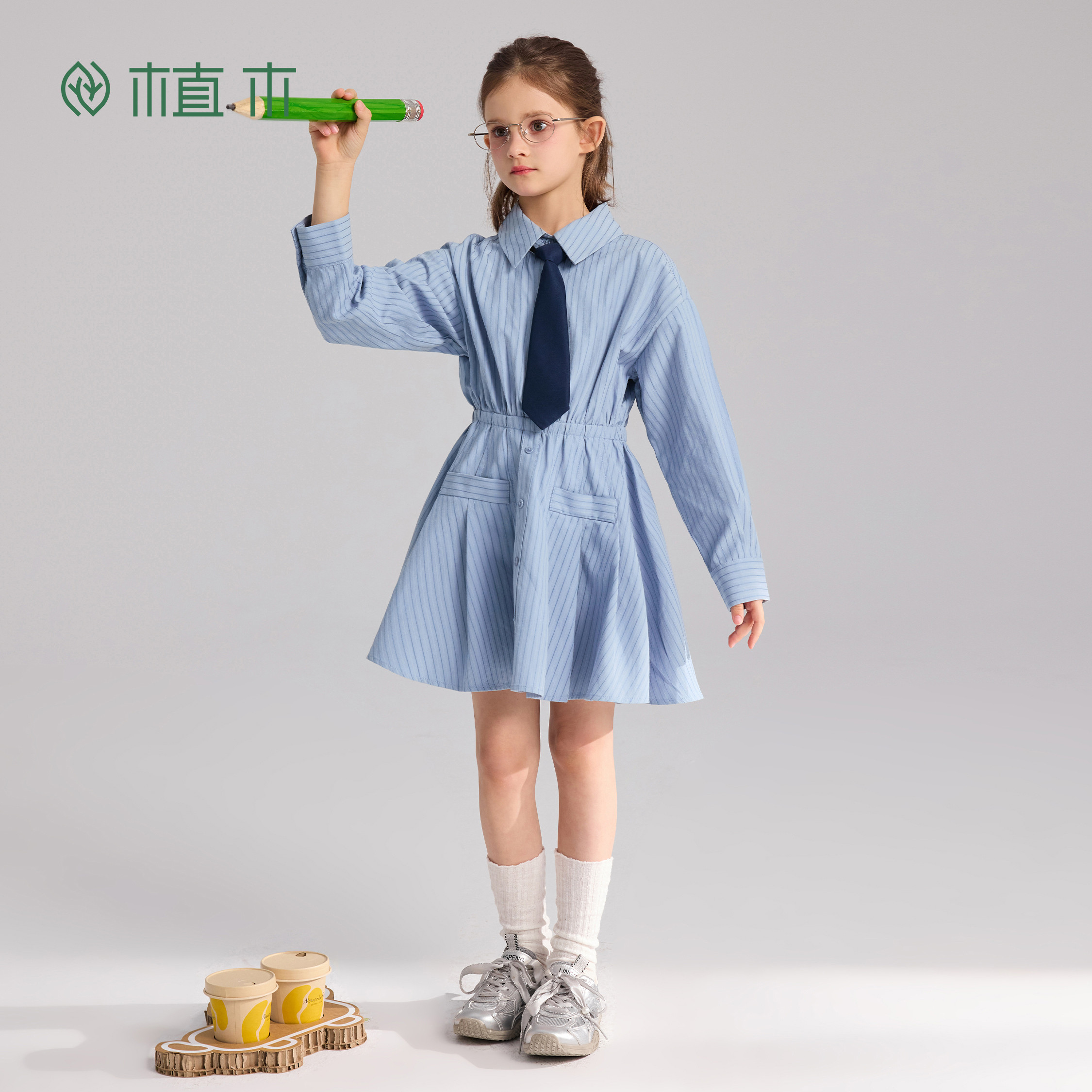 植木童装【miu系学院风】女童连衣裙儿童衬衫长裙2026年春季新款