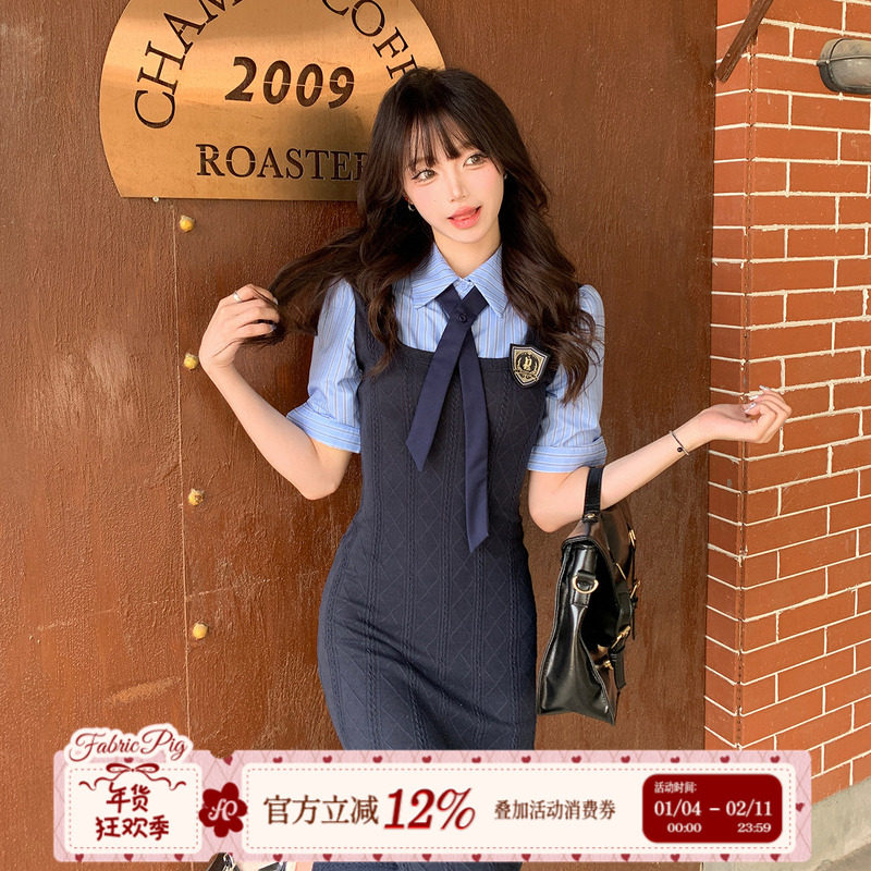 织物猪 赫拉学姐 学院风假两件连衣裙女小个子高级感气质制服长裙