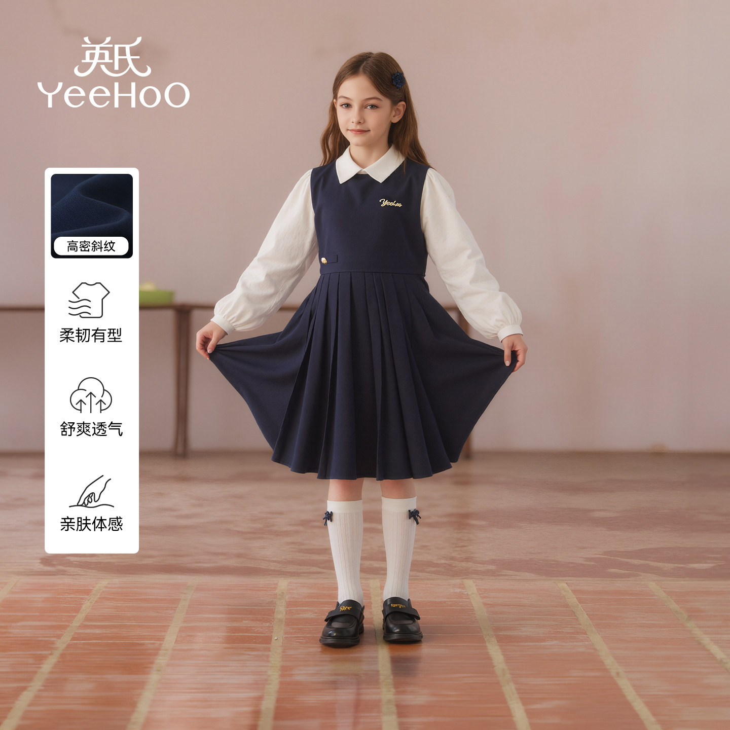英氏女童学院风连衣裙2026春秋新款洋气中大童气质长裙高级感裙子
