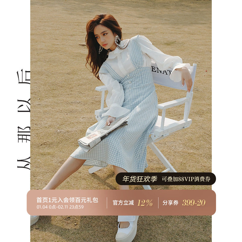 从那以后白桃青森法式连衣裙女衬衫长裙背带裙子学院风套装裙度假